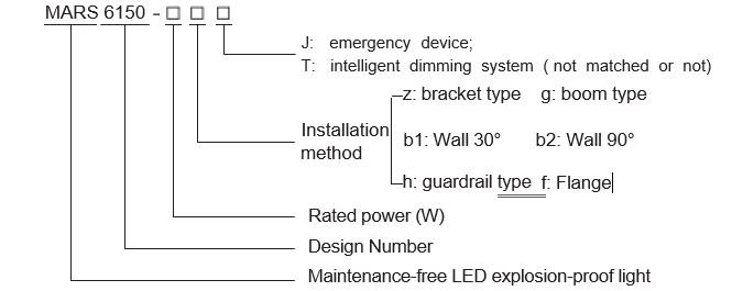 For example: if 30W explosion-proof lamps are required, the product model specification is: