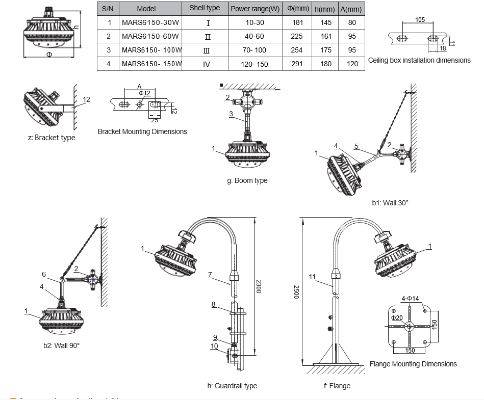 MARS 6150-30W W explosion-proof mark: Ex d ⅡCT6 Gb