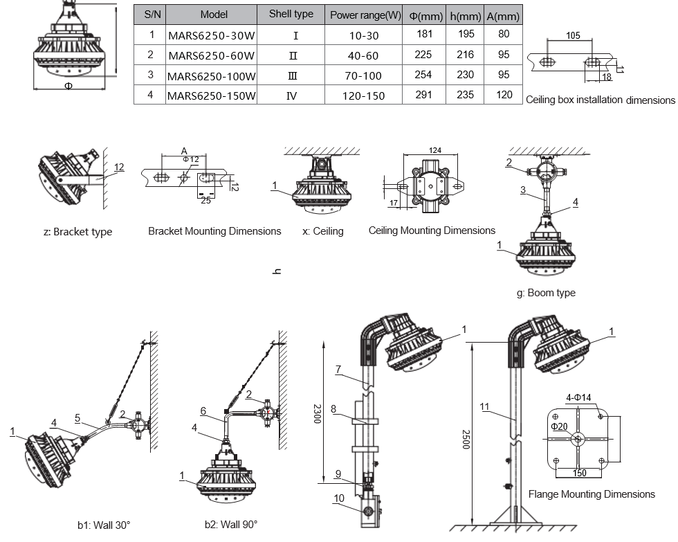 MARS 6150-30W W explosion-proof mark: Ex d ⅡCT6 Gb